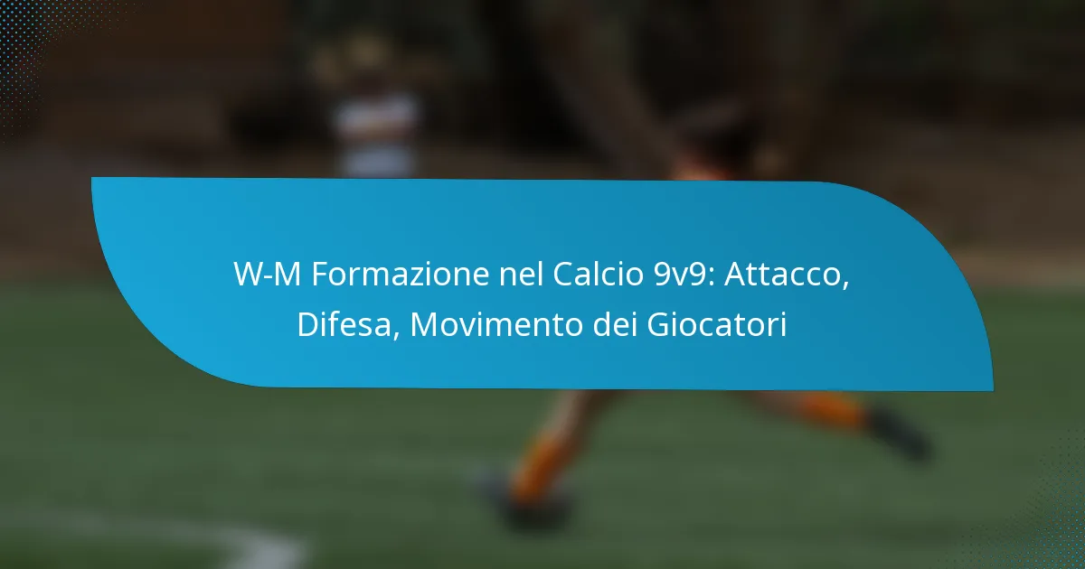 La formazione W-M nel calcio 9v9 enfatizza movimenti strategici dei giocatori per creare opportunità offensive e mantenere la solidità difensiva. I principali movimenti dei giocatori coinvolgono il posizionamento in modo da massimizzare lo spazio e migliorare la dinamica della squadra sia con che senza palla.